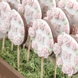 pirulitos de chocolate com decoração de flores