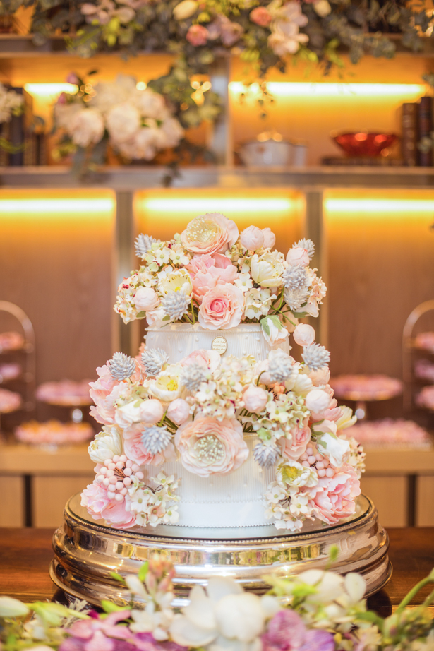 O bolo é de Isabella Suplicy e acompanhou as cores do jantar, todo enfeitado com flores de açúcar. Ele, claro, ocupou lugar de destaque na decoração, numa mesa só para ele, com flores e folhas de eucalipto que saíam de dentro das gavetas!