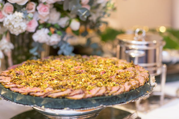 Na mesa, o buffet do Duas Gastronomia, com terrines, carpaccio de rosbife com pistache, risoto de shitake, favos de mel com nozes, maxi brie com castanhas caramelizadas.