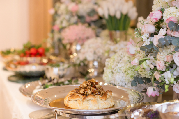 Todos os vasos e alturas de prata são da D.Filipa (assim como toda a prataria do jantar). As alturas são essenciais para dar movimento à decoração da mesa, além de encaixar melhor as flores e, no caso do buffet, as comidas.